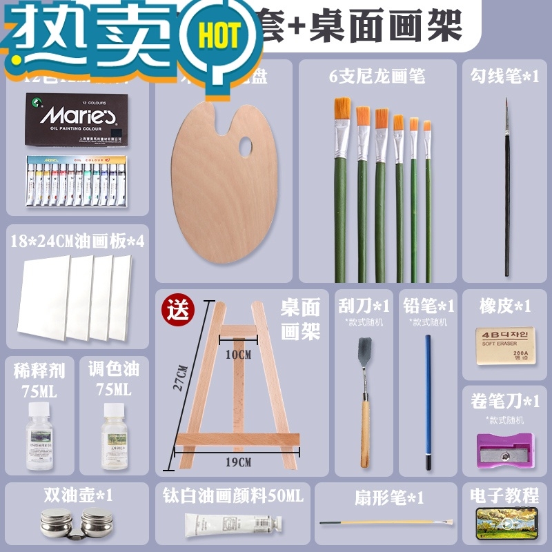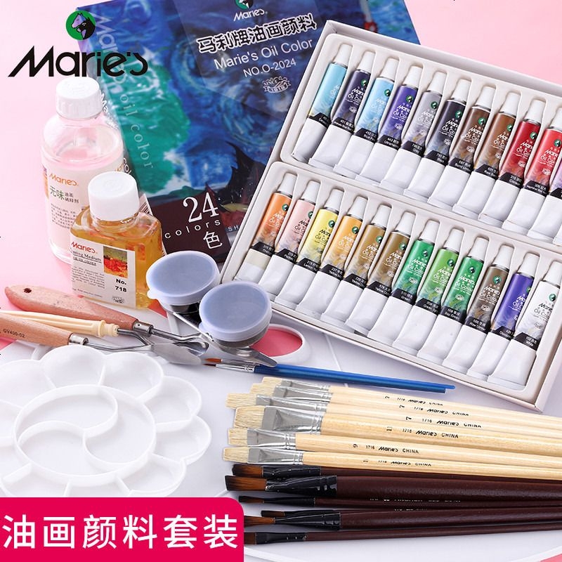 马利牌24色油画颜料套装初学者儿童DIY油画颜料工具套装12色18色马力用具画材...