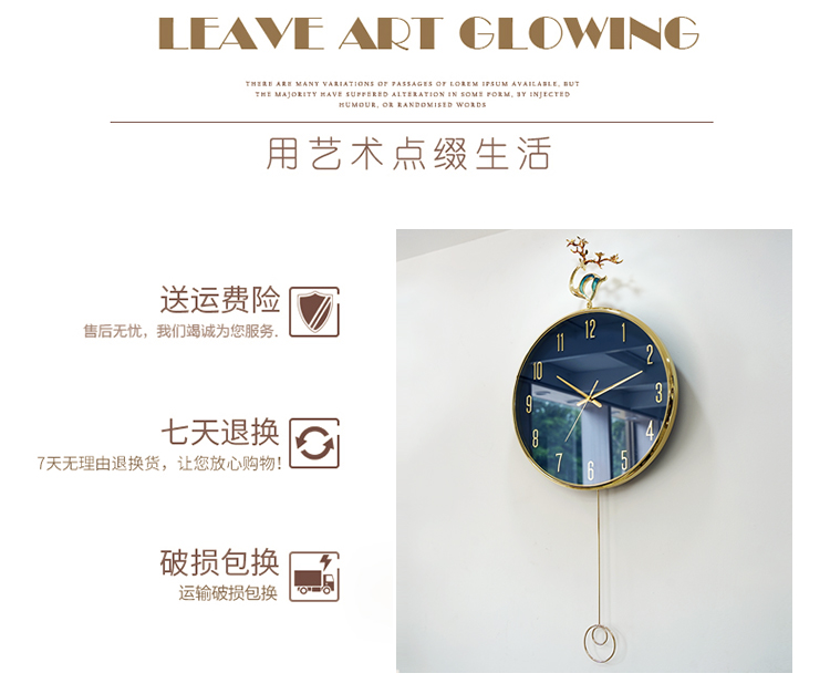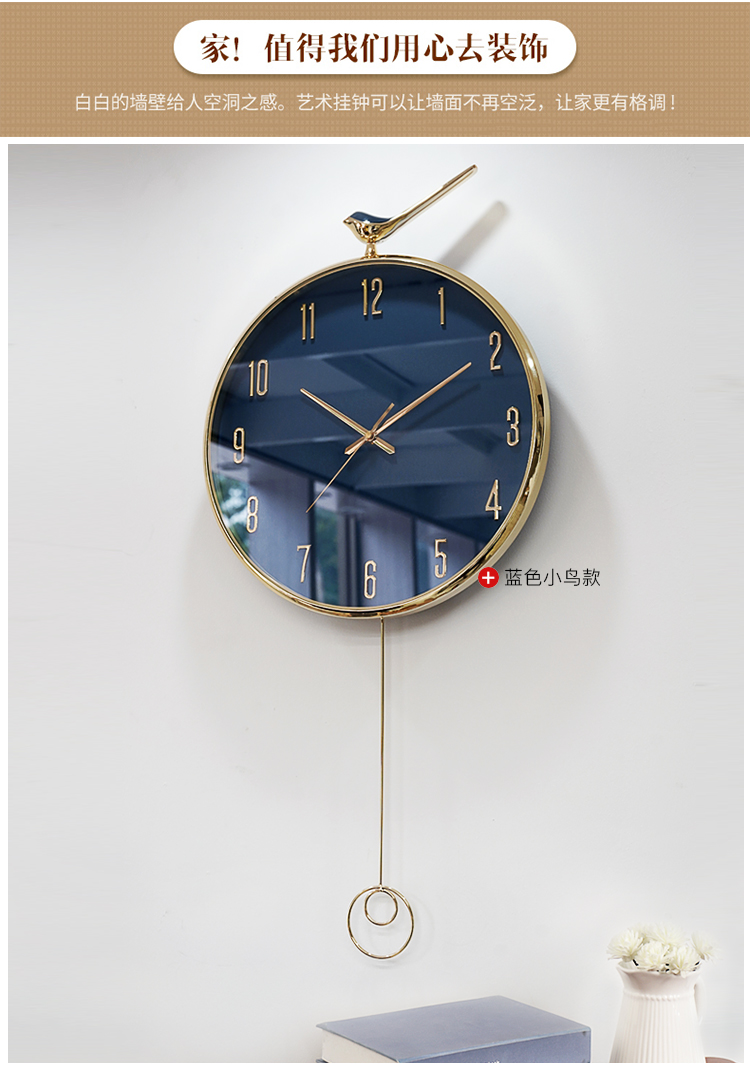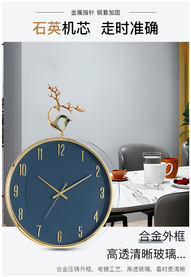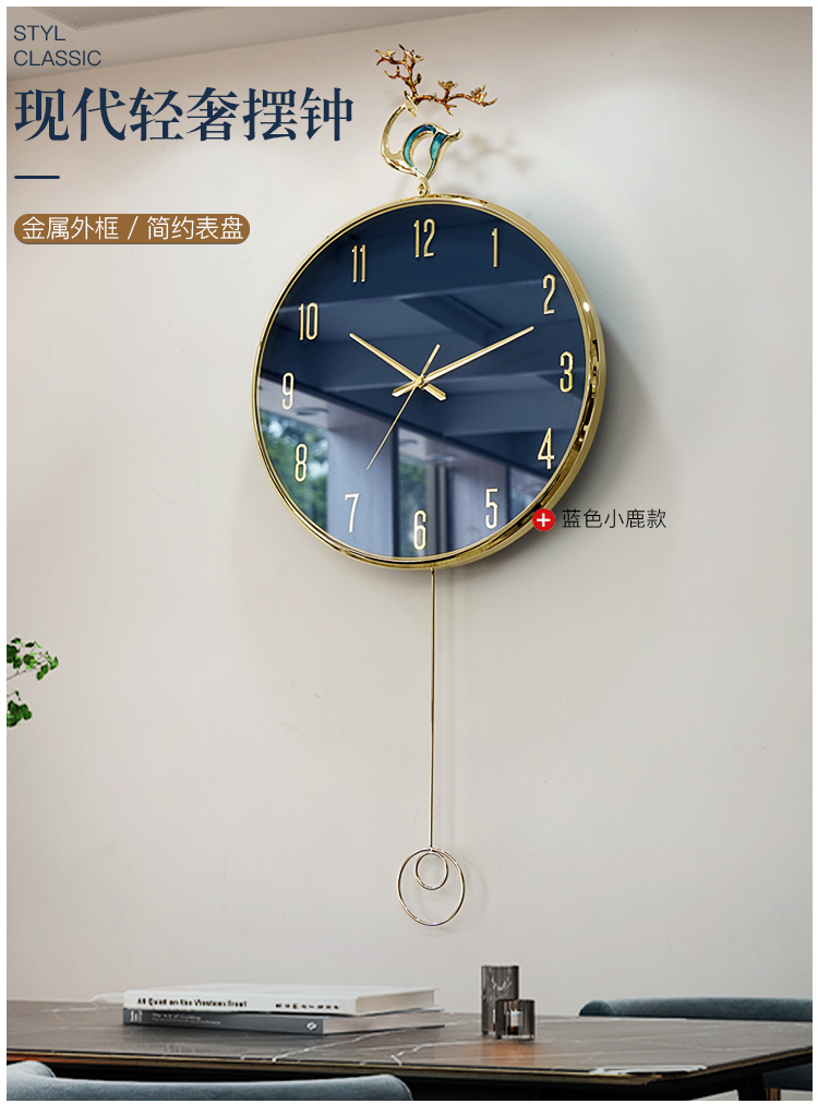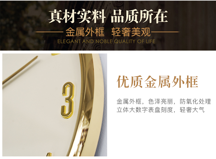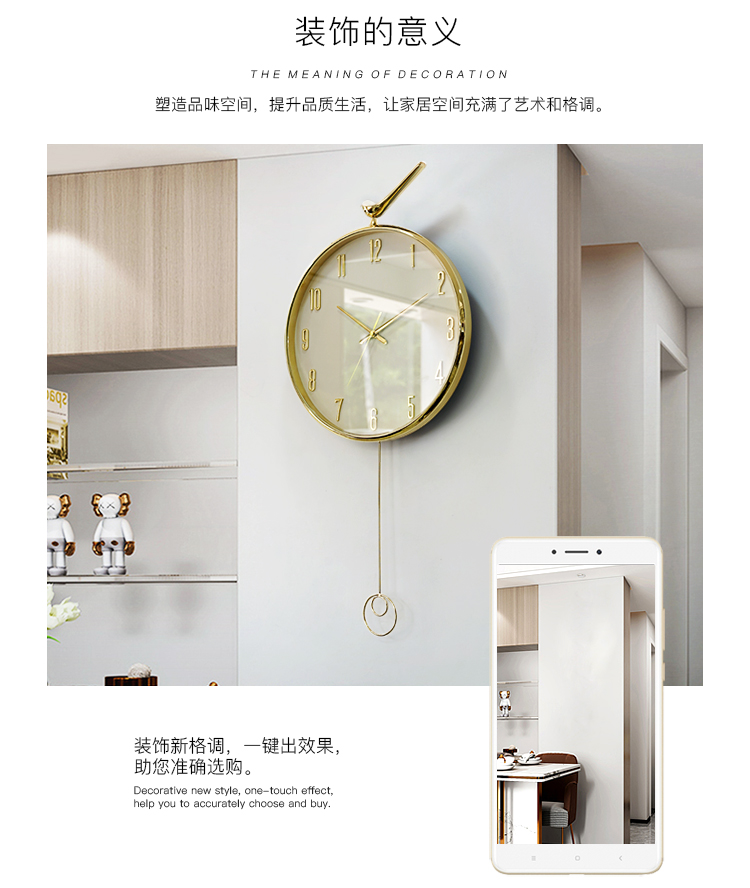 尚轻奢金属装饰挂钟客厅创意石英时钟家用简约摆钟