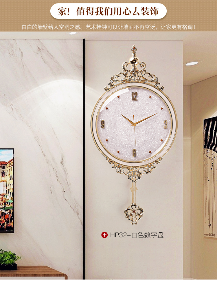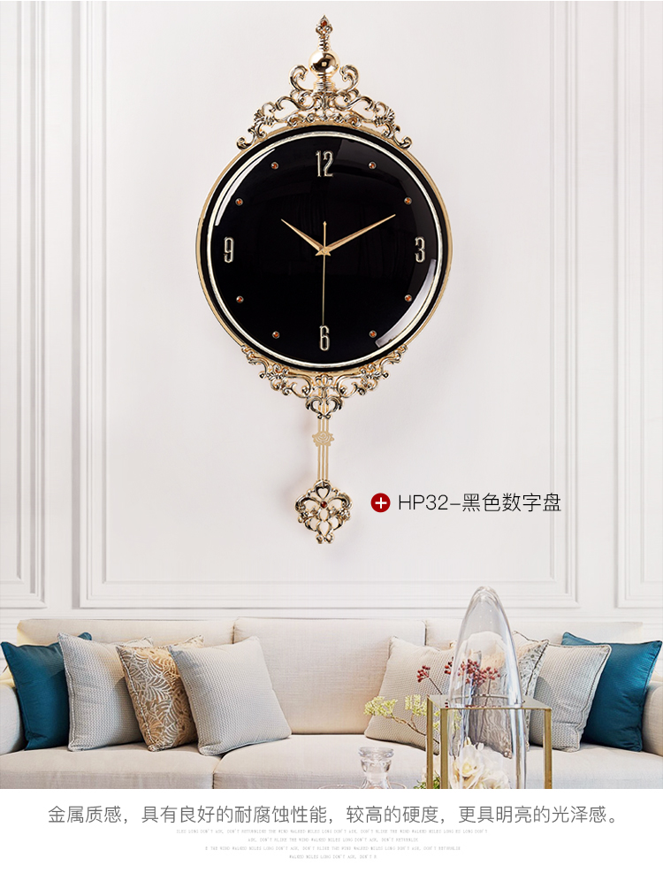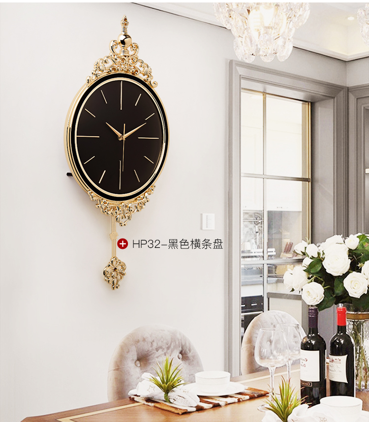 欧式时尚轻奢装饰金属摆钟客厅创意石英挂钟HP32 黑色小号横条