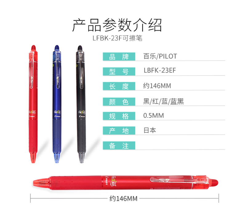 百乐(PILOT)按动热可擦水笔LFBK-23EF彩色中性笔办公学生可擦笔 0.5mm