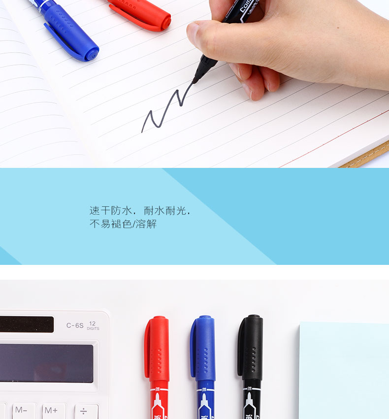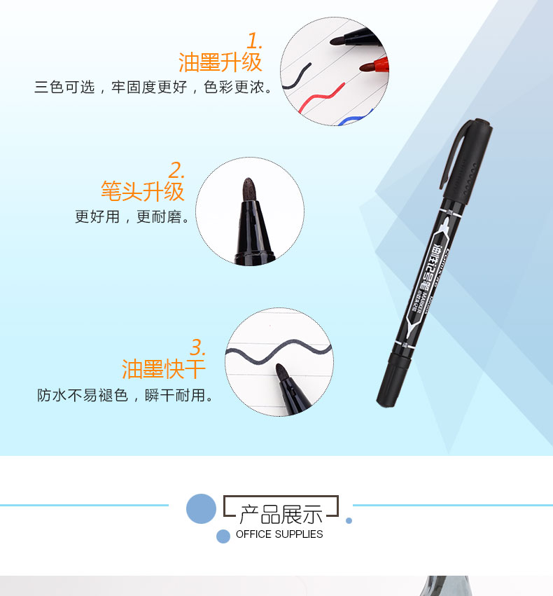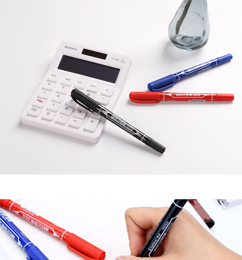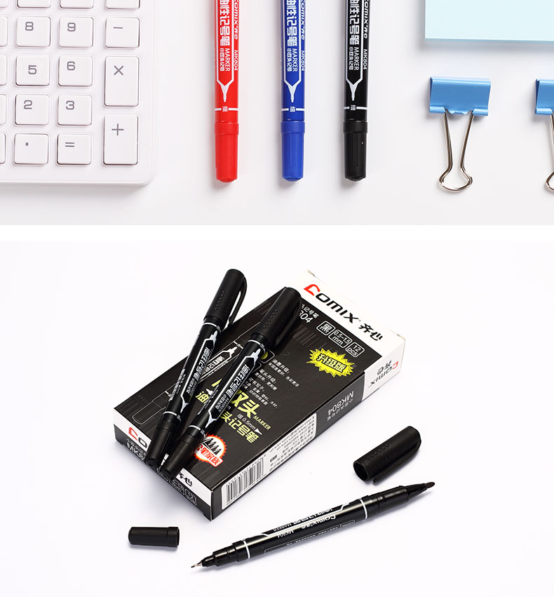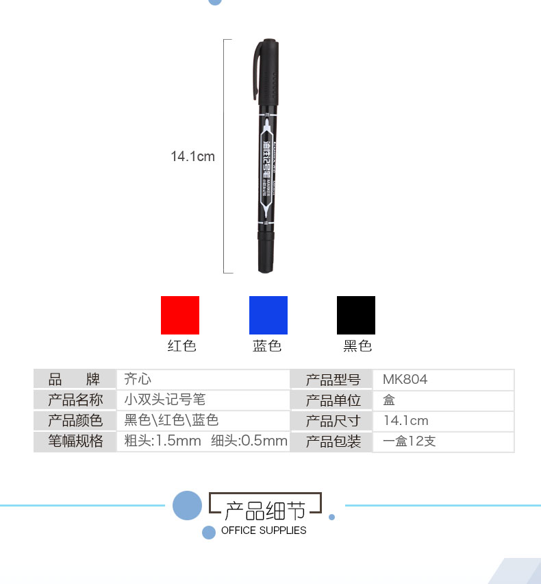 齐心(comix)MK804双头记号笔12支装 马克笔速干防水小双头油性