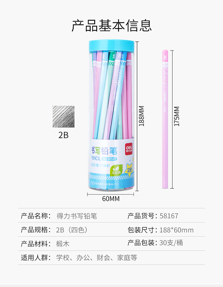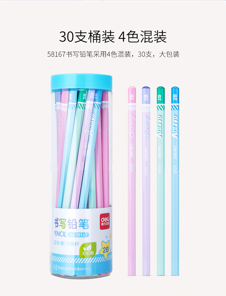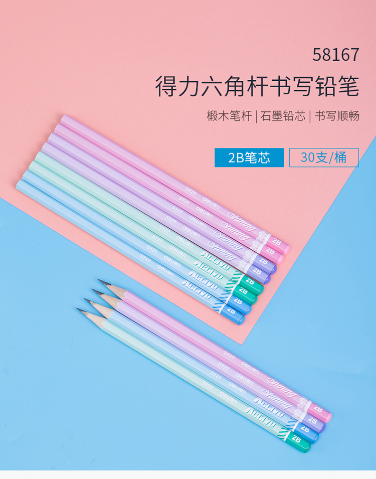 得力(deli)58167铅笔30支/桶 2B六角杆学生儿童写字笔素描绘画笔书写铅笔