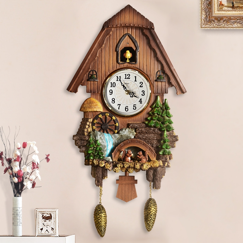 欧式客厅创意布谷鸟光控止报挂钟田园艺术时钟个性装饰报时摆钟