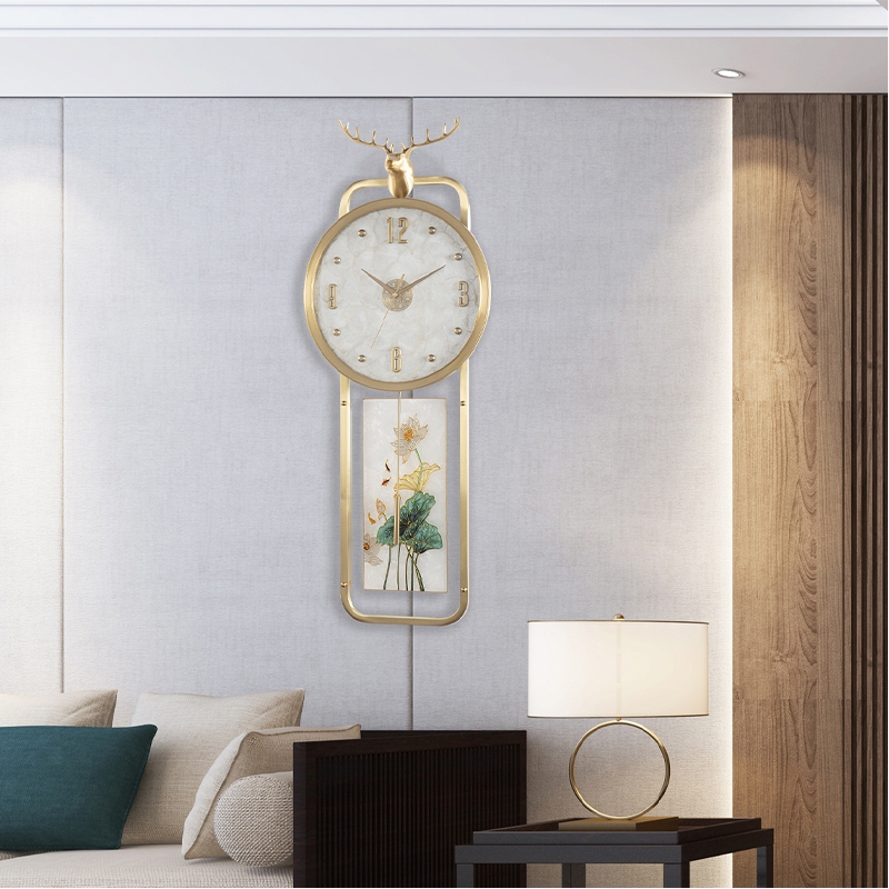 欧式轻奢黄铜福鹿高档装饰挂钟客厅时尚金属挂墙时钟挂件创意摆钟钟表