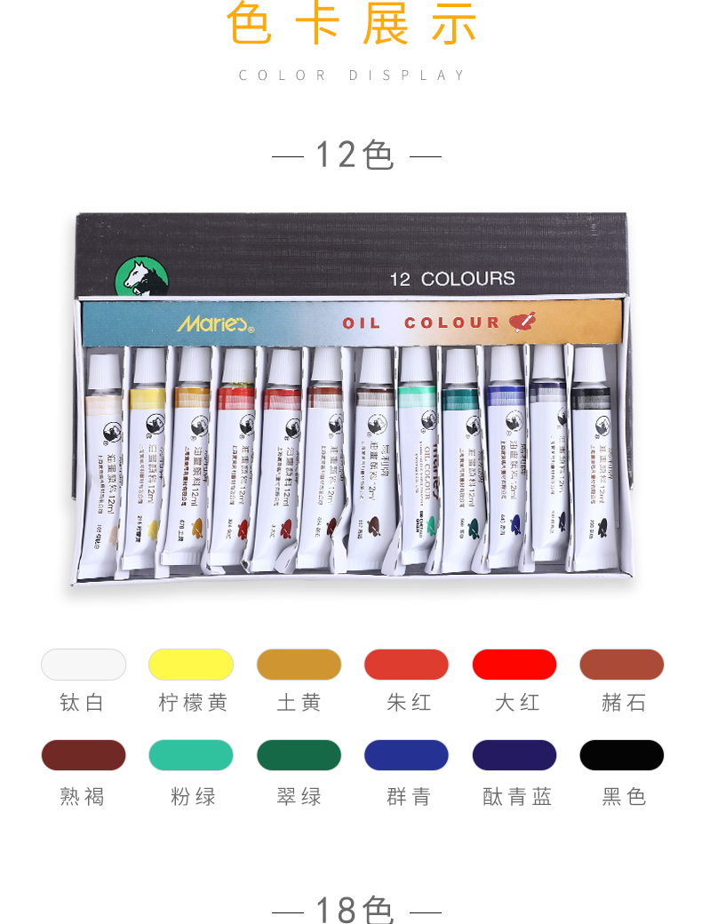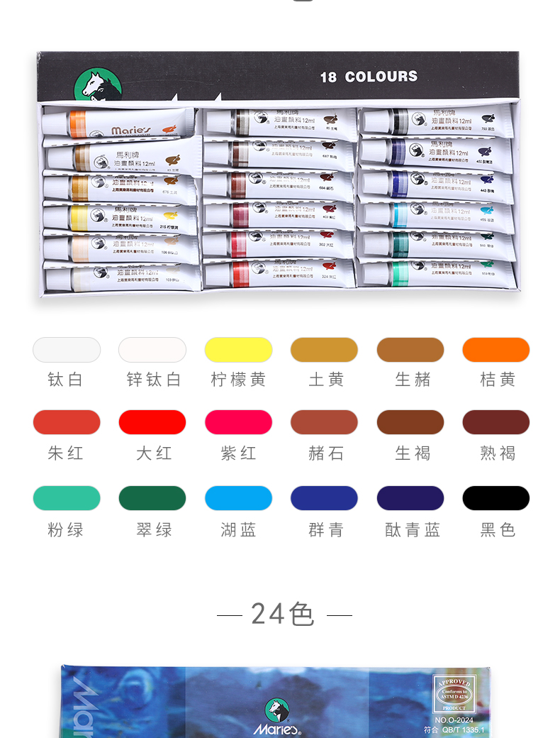 马利牌24色油画颜料套装初学者儿童DIY油画颜料工具套装12色18色马力用具画材用品