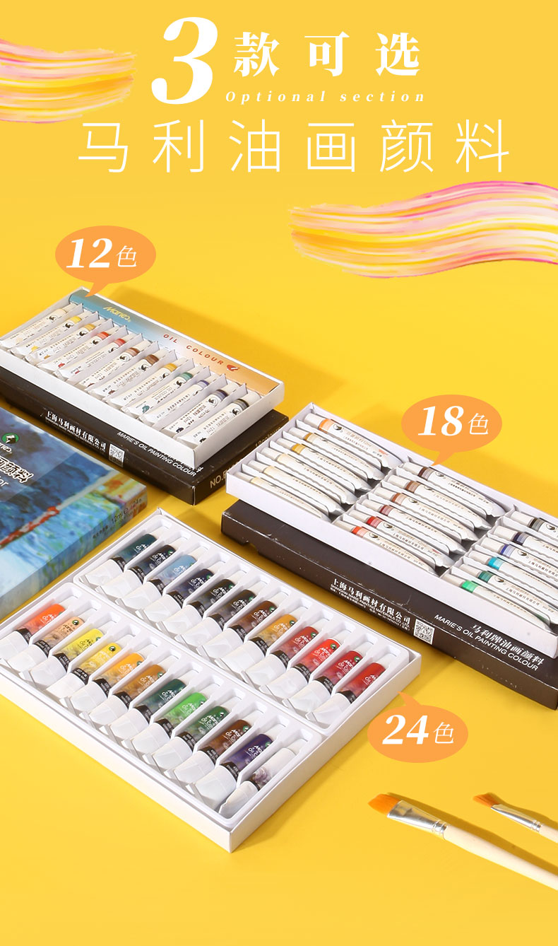 绿彩虹光油画颜料工具套装初学者专用12色油彩染料24色手绘专业画具刮刀调色盘全套