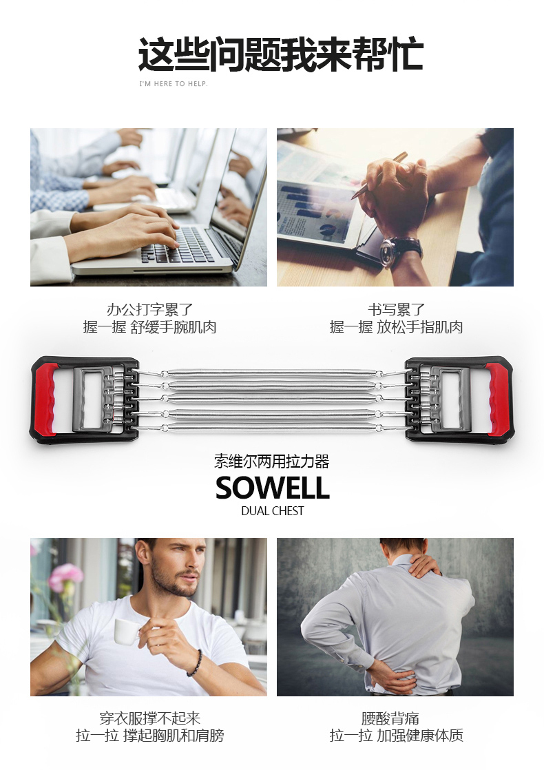 拉力器脚蹬弹簧拉力器扩胸器男家用健身器材仰卧起坐辅助器锻炼训练手臂
